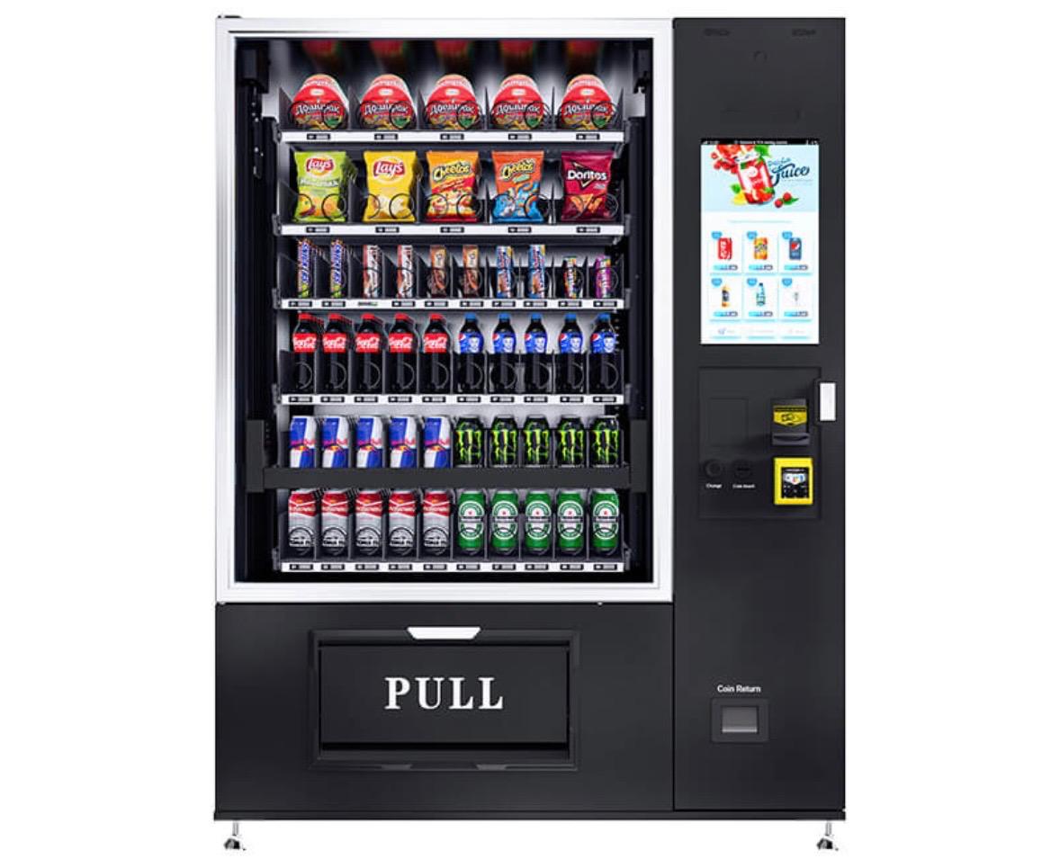 Cantitate 60 sloturi Tip Spirală/transportor/Împingător Capacitate Toate băuturile 270-300 buc Potrivit pentru băuturi, gustări, combinate Dimensiuni Î: 1940 mm L: 1453 mm A: 850 mm Ecran Ecran tactil 21,5 inch Tensiune 100V~240V, 50/60Hz Putere Refrigerat 520W Normal 40W Greutate 370KG Temperatură 4C~8 °C reglabilă Metode de plată: bancnotă, monede, plată fără numerar Suport card de credit/debit: VISA, Master Card/Apple pay/Google Pay/Samsung Pay